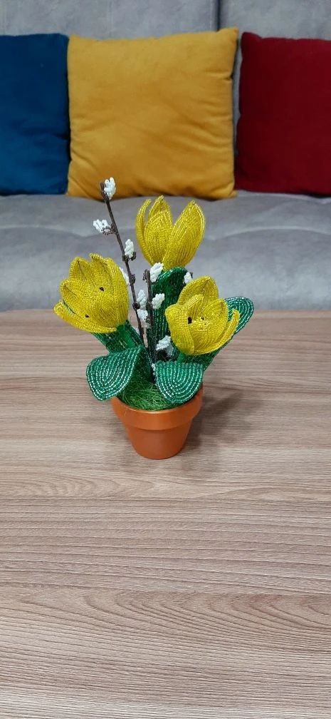 «Дыхание Весны» — изящная композиция из бисера высотой всего 21 см станет ярким акцентом вашего интерьера! Создайте атмосферу нежности и уюта, добавив эту изысканную деталь на полку, столик или подоконник. Это идеальный презент к празднику 8 марта, Дню рождения или любому другому событию. Пусть каждый день будет наполнен красотой и теплом!