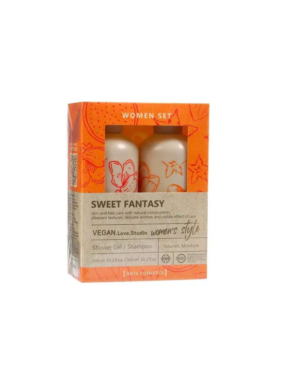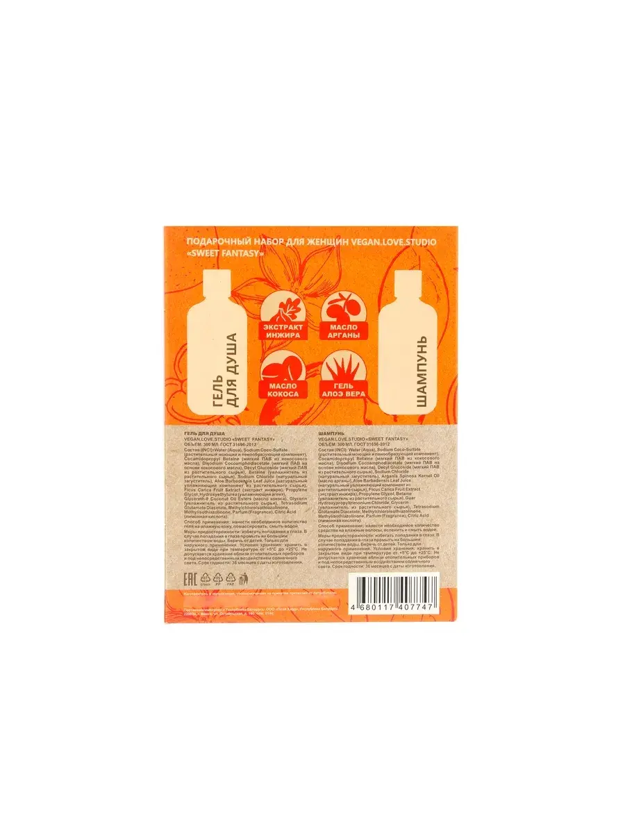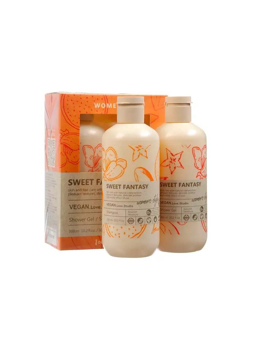 Подарочный набор "VEGAN Love Studio" - это прекрасный подарок для женщин, который представляет собой два экологичных продукта для ежедневного ухода за волосами и кожей:Этот гель представляет собой нежное средство для душа, обогащенное натуральными компонентами. Он подходит для ежедневного использования и оставляет кожу мягкой и увлажненной. Гель нежно очищает и придает ощущение свежести и комфорта.Шампунь этого набора создан специально для заботы о волосах. Он не содержит животных компонентов и является веганским продуктом. Шампунь помогает бережно очистить волосы, оставляя их мягкими и блестящими. Он подходит для разных типов волос и не вызывает раздражения кожи головы."VEGAN Love Studio" - это не только набор для ухода за собой, но и заявление о заботе о природе и животных. Все продукты из этой линейки веганские, что делает их отличным выбором для тех, кто ценит экологичные и cruelty-free продукты. Этот набор подарков будет прекрасным проявлением заботы и внимания к женщине в вашей жизни.