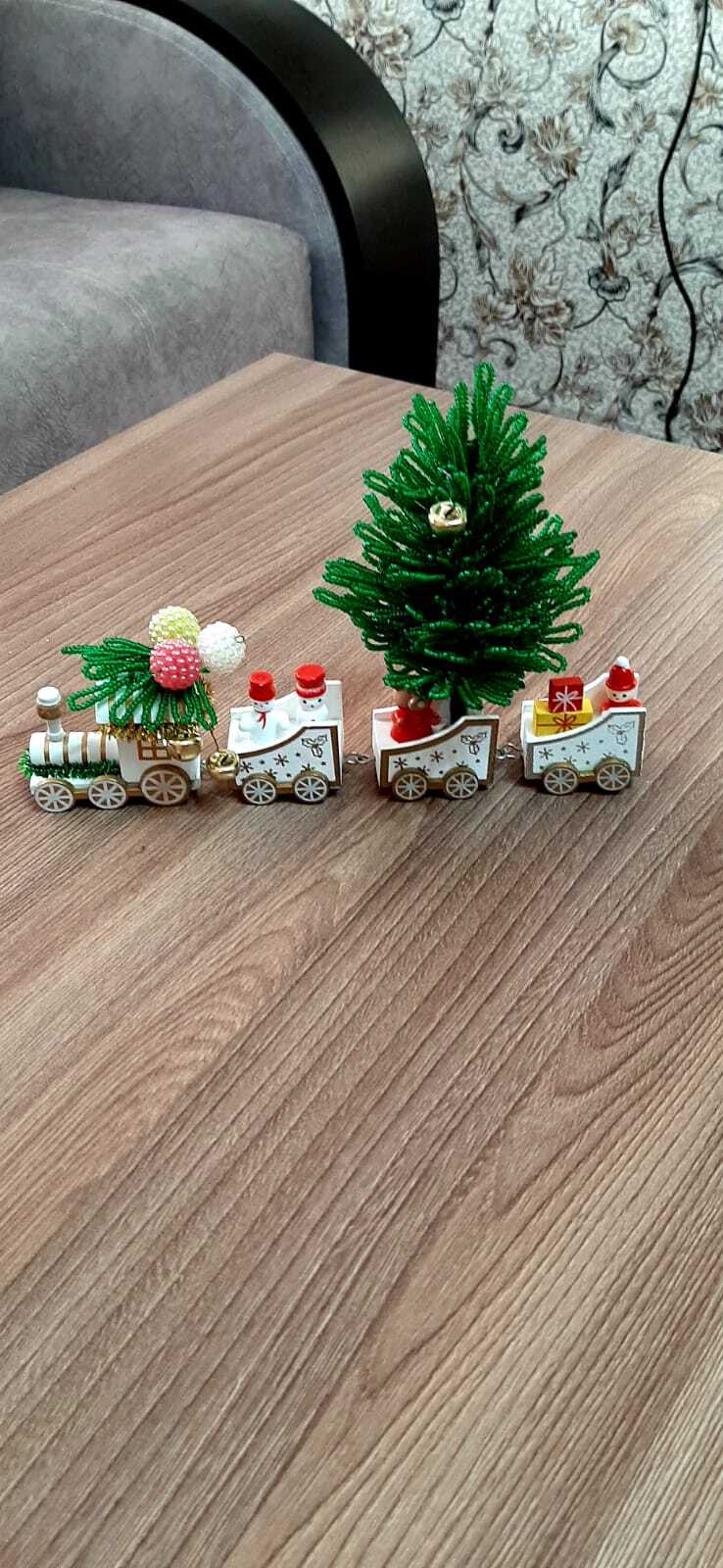 Украшение «Поезд Деда Мороза» — оригинальная елочка из бисера, расположенная на миниатюрном поезде. Идеально подходит для праздничного декора интерьера, станет ярким акцентом новогоднего стола или полочки. Уникальное изделие ручной работы подчеркнет ваш вкус и создаст атмосферу волшебства и уюта. Создайте сказку вокруг себя!